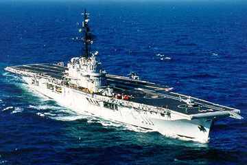 元:イギリス海軍軽航空母艦 R71 ヴェンジャンス Vengeance 起工:1942年11月16日 進水:1944年2月23日 竣工:1945年1月15日 貸与:1952年11月13日 ↓ 再就役:1952年11月13日 オーストラリア海軍軽航空母艦 R71 ヴェンジャンス Vengeance 返還:1955年10月25日 ↓ 再就役:1960年12月6日 ブラジル海軍軽航空母艦 A11 ミナス・ジェライス Minas Gerais 除籍:2001年10月16日 |