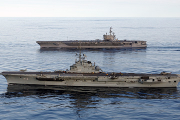 元:フランス海軍航空母艦 R-99 フォッシュ Foch 起工:1957年11月15日 進水:1959年7月18日 竣工:1963年7月15日 除籍:2000年11月15日 ↓ 再就役:2000年11月15日 ブラジル海軍航空母艦 A12 サン・パウロ São Paulo 除籍:2018年11月22日 |