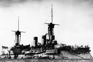 4.クルフュルスト・フリードリヒ・ヴィルヘルム Kurfürst Friedrich Wilhelm 起工:1890年 進水:1891年6月30日 竣工:1894年4月29日 除籍:1910年7月31日 ↓ 再就役:1910年9月12日 オスマン・トルコ海軍 戦艦 バルバロス・ハレディン Barbaros Hayreddin 戦没:1915年8月8日 (潜水艦雷撃) |